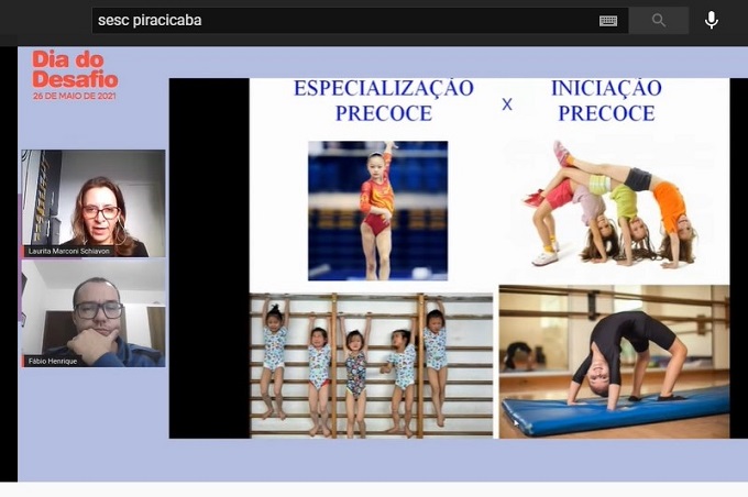 A palestra, que teve como pauta Pedagogia do Esporte Aplicada à Iniciação Esportiva em Ginástica, foi mediada por Fabio Henrique Miranda dos Anjos, assistente técnico da gerência de desenvolvimento físico-esportivo do Sesc SP, e contou com a participação de Ronaldo Lucentini, coordenador do PDB (Programa Desporto de Base) e chefe do setor de esportes de formação da Selam.