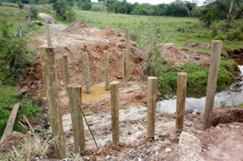A Secretaria de Agricultura e Abastecimento (Sema) iniciou na semana passada a reconstrução da ponte sobre o Córrego Jiboinha, bairro Florestinha, estrada PIR-264, que liga a Estrada da Floresta (PIR-017W) com o bairro Volta Grande. A equipe especializada em construções da Sema já fez a remoção da ponte velha e colocou os esteios batidos no chão. A estrutura da nova ponte terá vão de 6m, com 2m de altura e 4,5m de largura. Na obra, com investimento de R$ 28 mil, será utilizado eucalipto tratado. A conclusão está prevista para os próximos 20 dias, se as condições climáticas permitirem. O secretário da Agricultura Waldemar Gimenez infomou que para o andamento da obra foi necessário interditar o trecho, mas “ninguém está ilhado”, afirma, por que há saída pelos dois lados da ponte. Em caso de dúvida, ligar para Sema:19.3437. 4000.