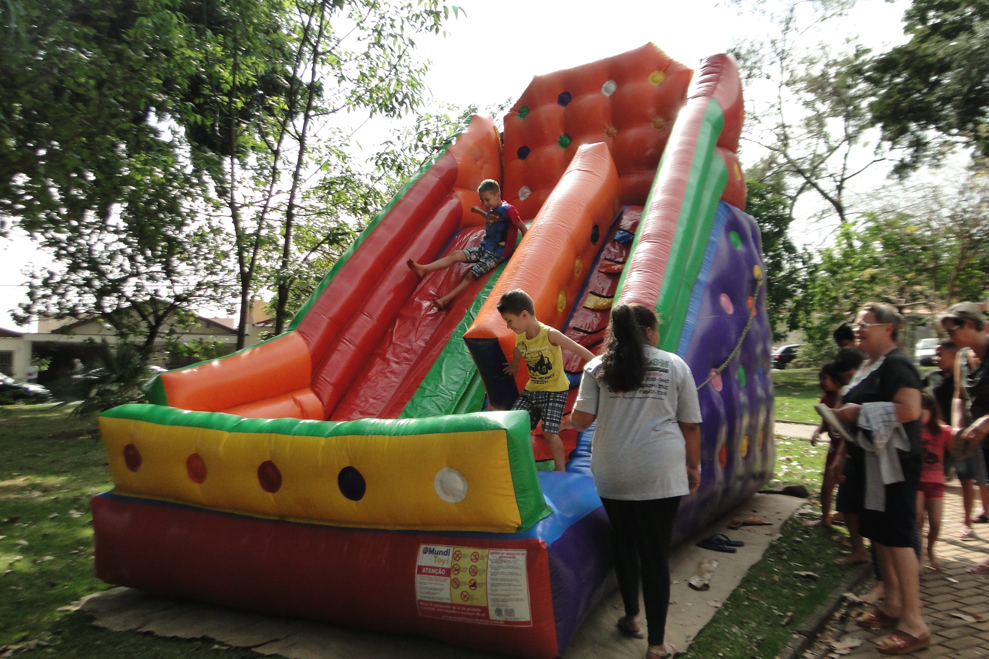 Brinquedos infláveis, cama elástica, pula pula, voleibol, queimada, pega-pega, brincadeira de corda; histórias contadas por Lenira Gandhi e Cynthia Rocha, devem garantir a diversão.