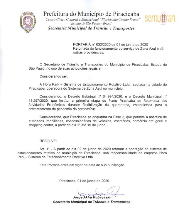 A Estapar, empresa responsável pela operação da Zona Azul Digital de Piracicaba, retomará, na próxima terça-feira, 02/06/2020, a operação do sistema rotativo que estava suspenso desde o dia 23 de março, por determinação do órgão municipal, em razão da pandemia de Covid-19. A decisão integra o Plano Piracicaba de Retomada das Atividades Econômicas, que começa na segunda-feira, com flexibilização de atividades imobiliárias, concessionárias de veículos, escritórios, comércio em geral, shopping center e salões de beleza e afins. A empresa ressalta que os usuários podem pagar a Zona Azul Digital pelo aplicativo Vaga Inteligente, disponível gratuitamente nas versões Android e iOS. O app funciona como uma carteira eletrônica (e-wallet) e após finalizar o cadastro, o usuário pode pagar e renovar o tíquete até o tempo máximo permitido. “Nesse momento, o aplicativo proporciona maior segurança e eficiência, pois o cidadão pode fazer tudo diretamente do carro, evitando riscos de contaminação”, destaca Adelcio Antonini, diretor da Estapar. A empresa adotará medidas de prevenção e segurança tanto para seus colaboradores quanto para os clientes que utilizam o serviço, visando uma menor disseminação da doença. Os agentes trabalharão com máscaras de pano e face shield (proteção que cobre todo o rosto), além disso, terão frascos individuais com álcool em gel para higienização das mãos. “As normas e recomendações das autoridades de saúde municipal e estadual serão seguidas por toda a operação”, ressalta Antonini. A empresa também fará a higienização dos parquímetros quatro vezes ao dia, duas na parte da manhã e as outras no período da tarde. O atendimento aos usuários, na central de atendimento, seguirá as medidas de distanciamento e segurança.