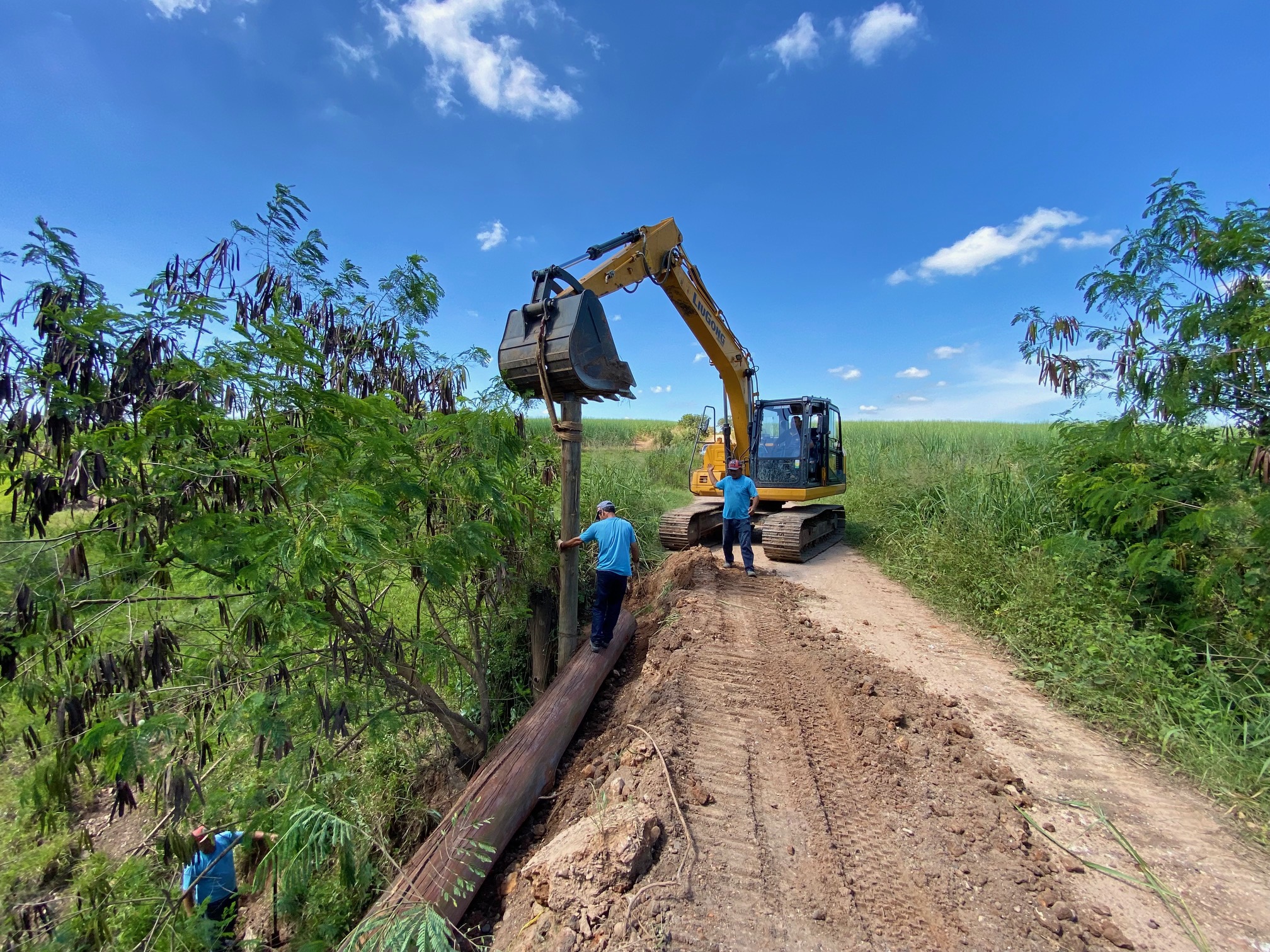 Motoniveladora fazendo melhorias em estrada da zona rural