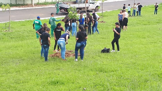 Alunos de escolas do bairro participaram do plantio