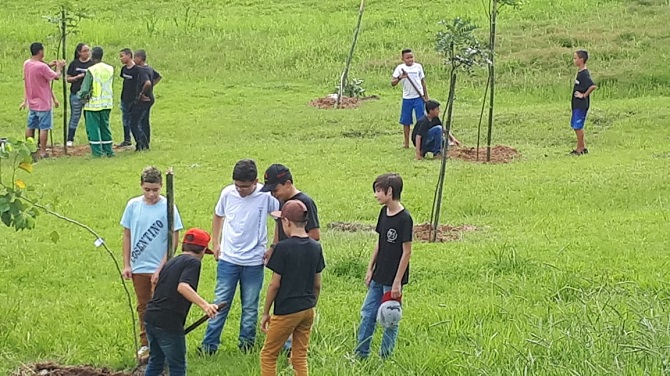 Alunos das escolas Professora Maria de Lourdes Silveira Cosentino e Professora Catharina Casale Padovani participaram, na semana passada, de um plantio de árvores em Santa Teresinha. A iniciativa faz parte das comemorações dos 195 anos do bairro e também dos trabalhos realizados pelo Fórum Permanente em Defesa da Bacia do Rio Corumbataí.