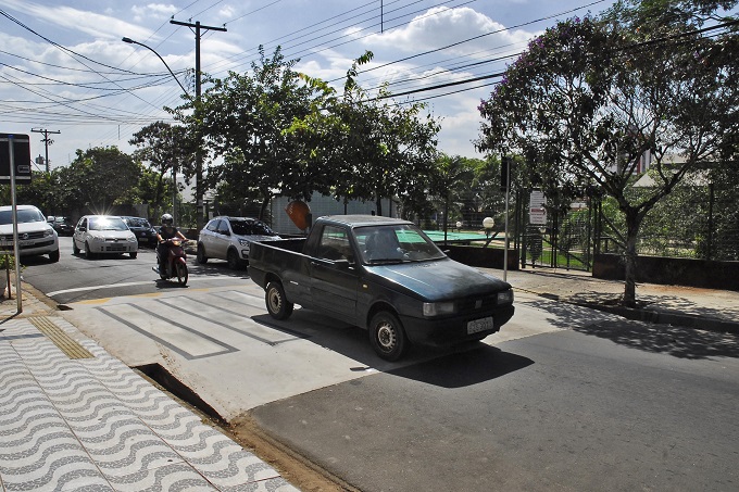 Faixa elevada na avenida Manoel Conceição, em frente à Escola Municipal Pedro Baron, na Vila Rezende