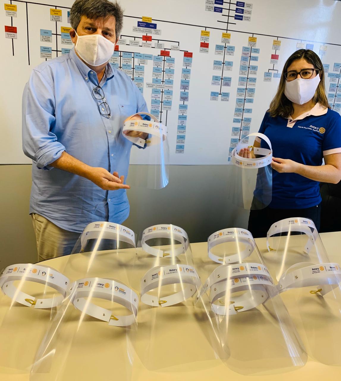 O Rotary Club de Piracicaba, Rotary de Saltinho e AFROP entregaram nesta manhã de quinta-feira (07/05) 420 máscaras de proteção facial face shield para os profissionais das unidades de saúde da Atenção Básica. A doação, que faz parte das ações filantrópicas da entidade no combate ao coronavírus, ocorreu na USF São Francisco, pela presidente da Associação das Famílias Rotarianas de Piracicaba (AFROP), Danielle Pupin, e pela rotariana Ana Lucia Amstalden. Em abril, a entidade já havia entregue à Secretaria de Saúde outros 300 EPI semelhantes, totalizando 720. De acordo com Danielle, Santa Casa, HFC, Hospital Regional e Associação Ilumina também foram beneficiados com a atitude. Serão contemplados também os profissionais do SAMU e do Centro de Especialidades Médicas (CEM), ambos ligados à Secretaria Municipal de Saúde. “Seguimos a orientação do Rotary Internacional, que criou em sua atuação mundial uma área voltada à prevenção e combate de doenças, especialmente a poliomielite, temos realizado ações em Piracicaba de apoio ao combate ao coronavírus, que é um problema emergencial. Assim, todos os nossos esforços nesse momento estão voltados a produção de EPIs aos profissionais de saúde da cidade de Piracicaba e região durante a pandemia”, explicou.
