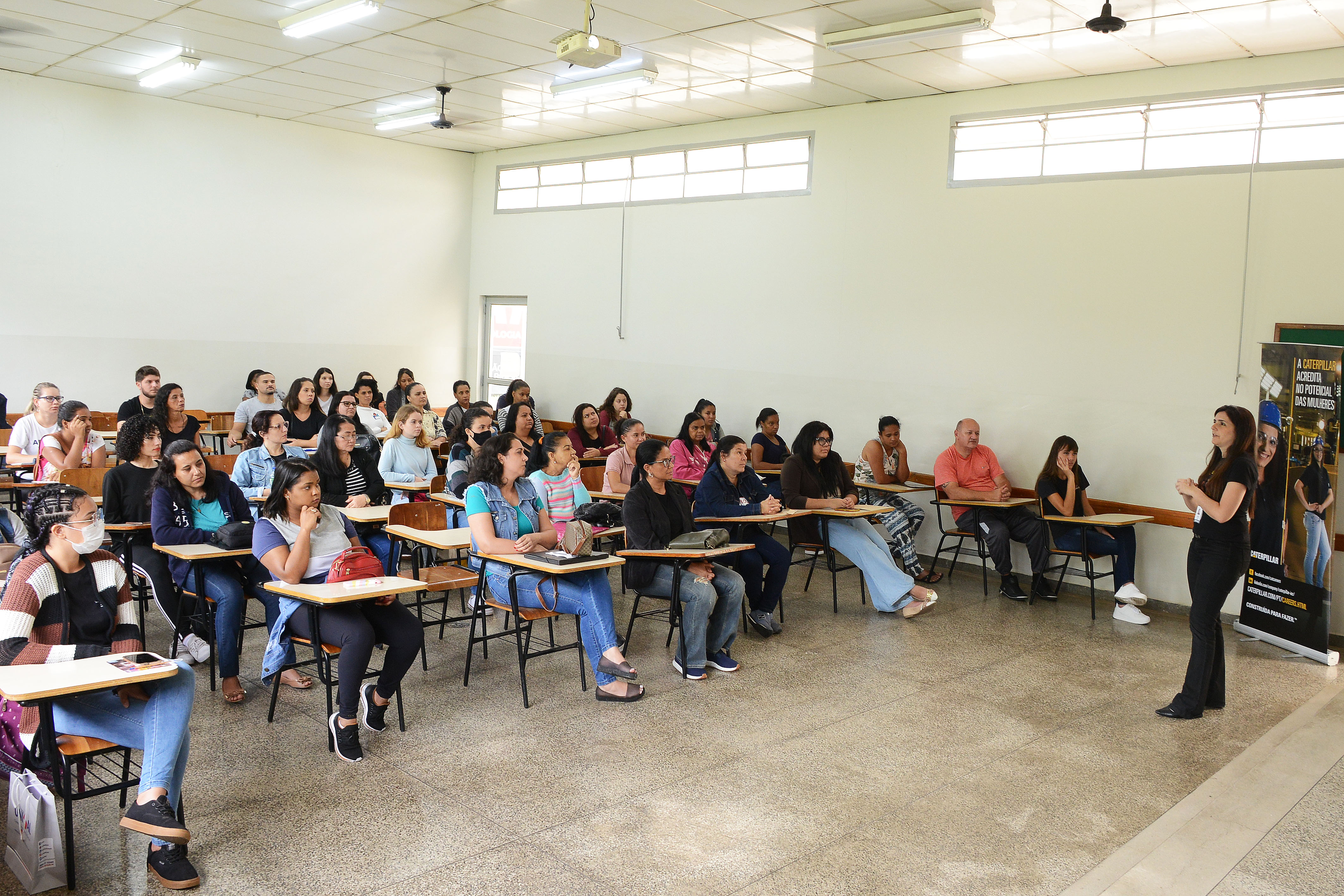 A oficina realizada pela Caterpillar foi uma das mais concorridas nesta quarta-feira O perfil do público na Feira é, em sua maioria, formado por mulheres (67,5%), sem filhos (58,6%), desempregadas (74,5%), com Ensino Médio completo (50,8%), solteiras (63,3%) e da raça branca (53,5%). INCLUSÃO – A ArcelorMittal realizou no período da tarde de hoje a palestra Inclusão do grupo LGBTQIA+ na ArcelorMittal Brasil, com o especialista de Diversidade & Inclusão Pedro Borges. A empresa está com vagas abertas para estágio, operador(a), técnico(a) de manutenção, engenheiro(a), auditor(a) e supervisor(a). “Todas as nossas vagas são divulgadas com a premissa de que a empresa valoriza a diversidade e inclusão, por isso, incentivamos que mulheres, pessoas com deficiência, de diferentes raças e orientações sexuais se candidatem”, destacou Bruna Barusso, analista de comunicação.