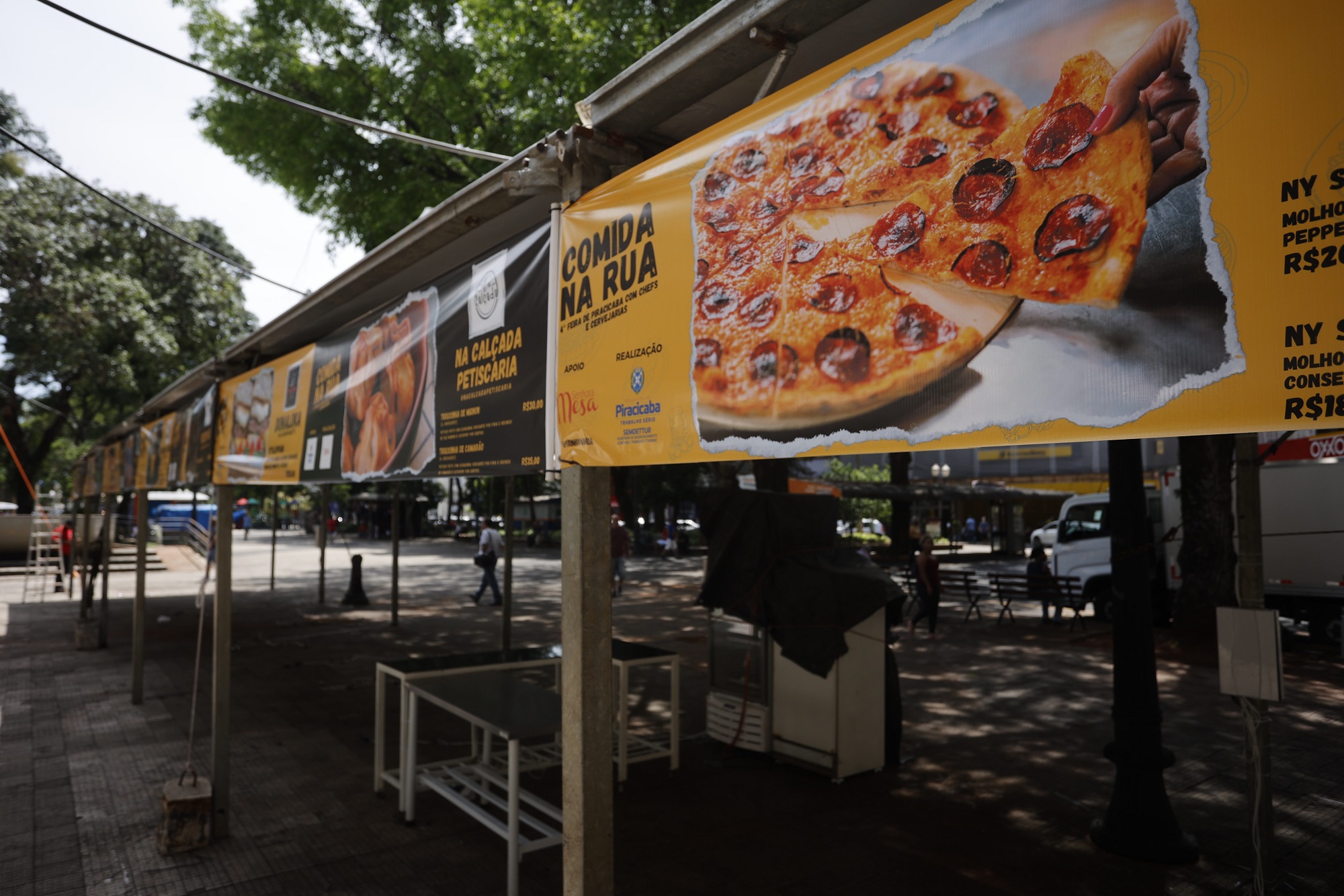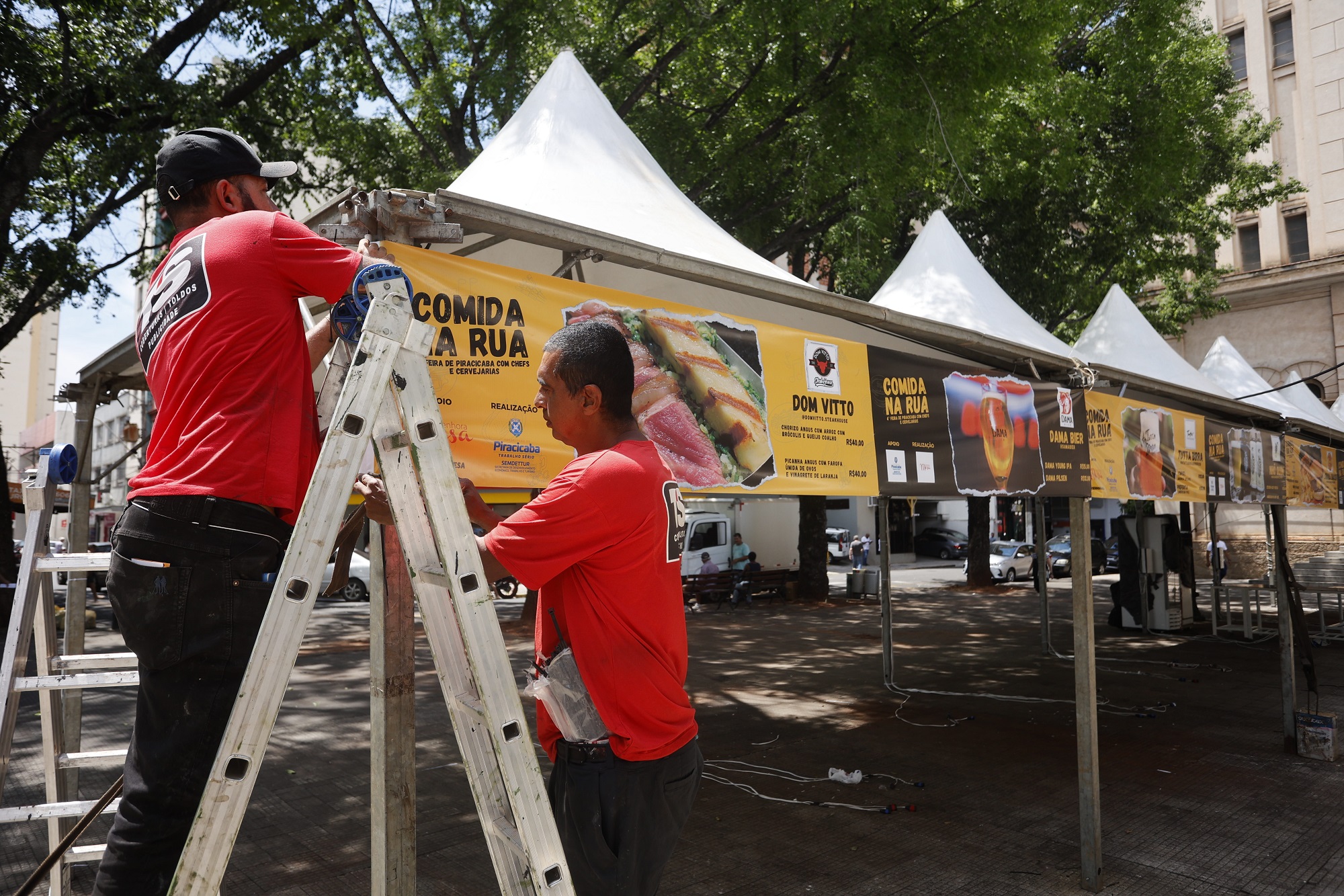 Equipe da organização ajusta os últimos detalhes para o evento De acordo com a jornalista de gastronomia Patrícia Guimarães, a 4ª Feira Gastronômica – Comida na Rua é uma oportunidade também para que os chefs conquistem novos clientes, levando em consideração que a pandemia da Covid-19 gerou dificuldades a diversos restaurantes, devido às restrições de circulação. "Estaremos em um espaço ao ar livre, com chefs renomados da cidade preparando pratos de qualidade na hora. Os preços também foram pensados para serem acessíveis ao público", comentou. Como parte do evento, equipe de voluntários da Catedral de Santo Antônio venderá cuscuz, com a renda revertida para a manutenção da igreja. SHOWS – Ao longo do dia, a 4ª Feira Gastronômica – Comida na Rua também terá shows com artistas que se consolidaram no cenário musical da cidade, com repertório composto MPB (Música Popular Brasileira), samba e jazz. Quem abre a programação, às 11h, é a cantora Pá Moreno. Depois, às 13h30, tem Lú Garcia. E mais tarde, às 19h30, será a vez de Sandra Rodrigues soltar a voz. SERVIÇO – 4ª Feira Gastronômica de Piracicaba – Comida na Rua. Amanhã, sábado, 3/12, das 11h às 22h, na praça José Bonifácio, no Centro da cidade. Entrada gratuita. Mais informações: (19) 3403-1356.