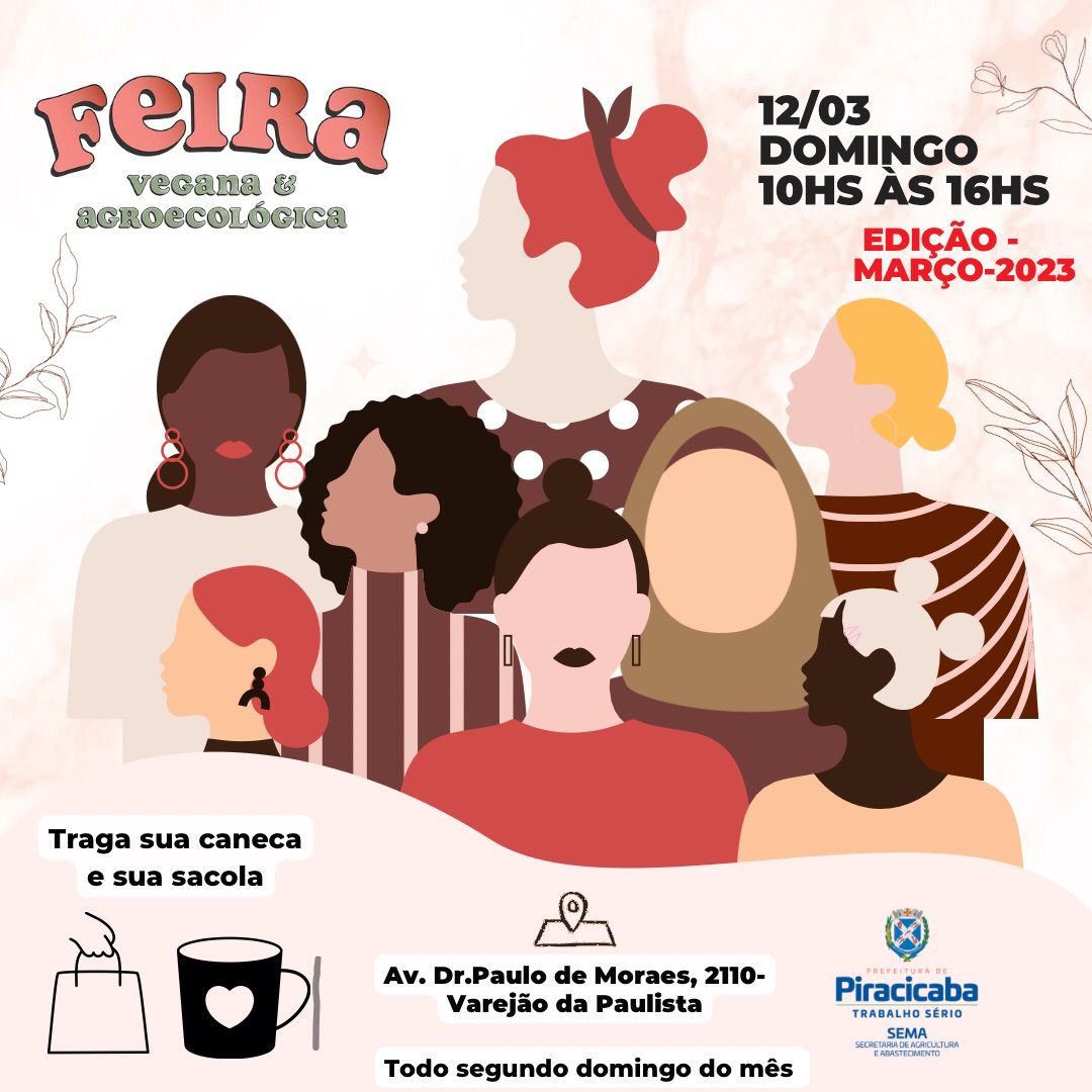 No domingo, 12/03, acontece a 14ª edição da Feira Vegana e Agroecológica, uma iniciativa de produtores locais e da Prefeitura de Piracicaba, por meio da Sema (Secretaria Municipal de Agricultura e Abastecimento).