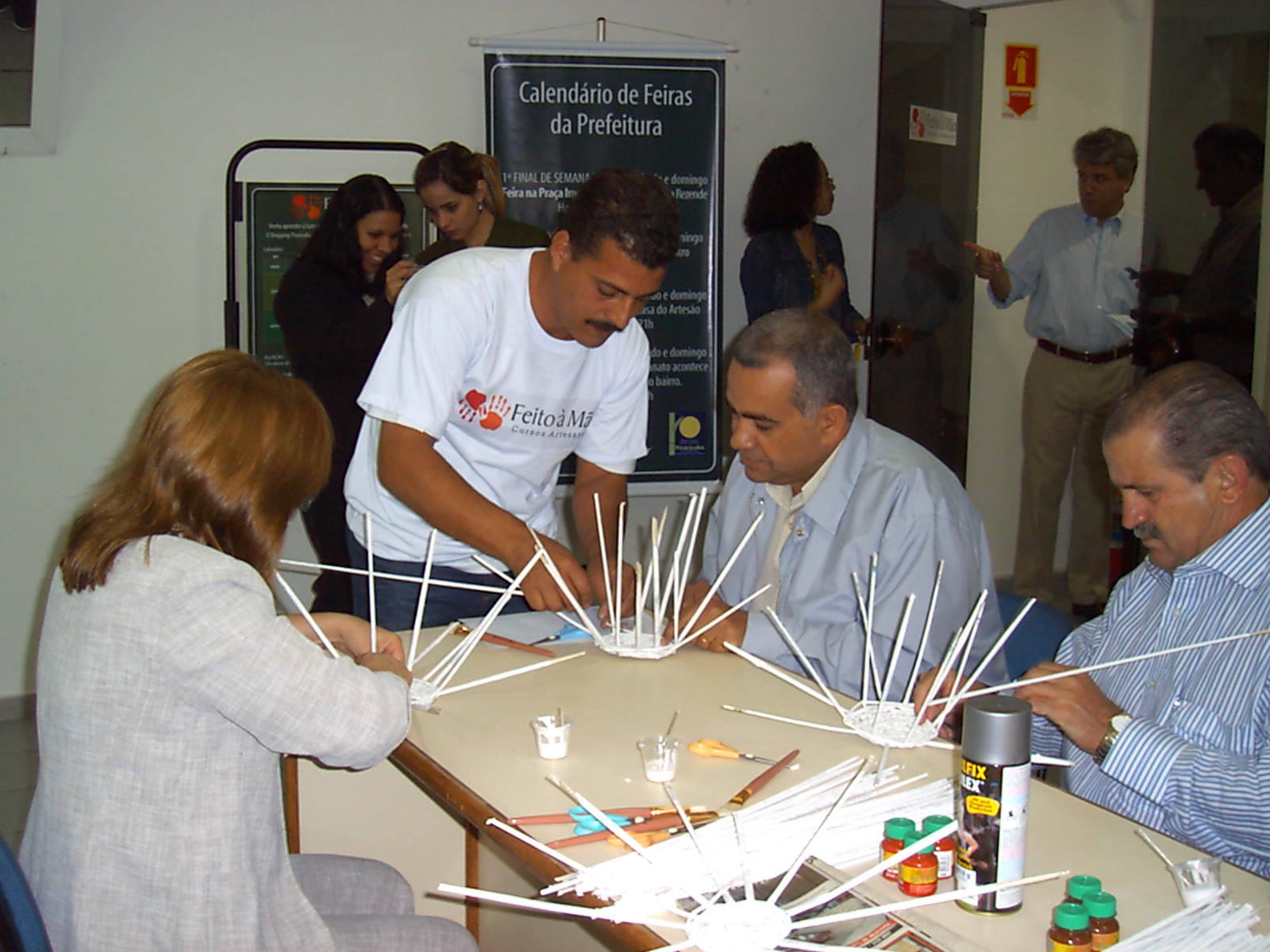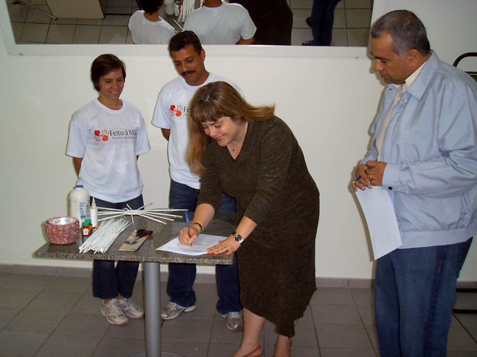 Após a assinatura da parceria entre o Shopping Piracicaba e a Secretaria Municipal de Turismo (Setur), na manhã de hoje (21), que oficializou o programa Feito à Mão Cursos Artesanais, os convidados literalmente utilizaram as mãos para participar da oficina coordenada pelo artesão Harley Leite Bertolani (Caco) com utilização de jornais.