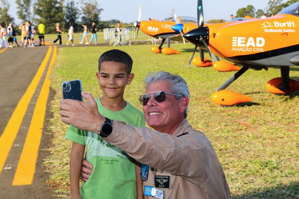 Além de parar o evento para acompanhar as apresentações, as crianças e o público presente tiravam fotos ao lado dos aviões com a equipe da esquadrilha, formada por pilotos militares veteranos de Caça da Força Aérea Brasileira (FAB).