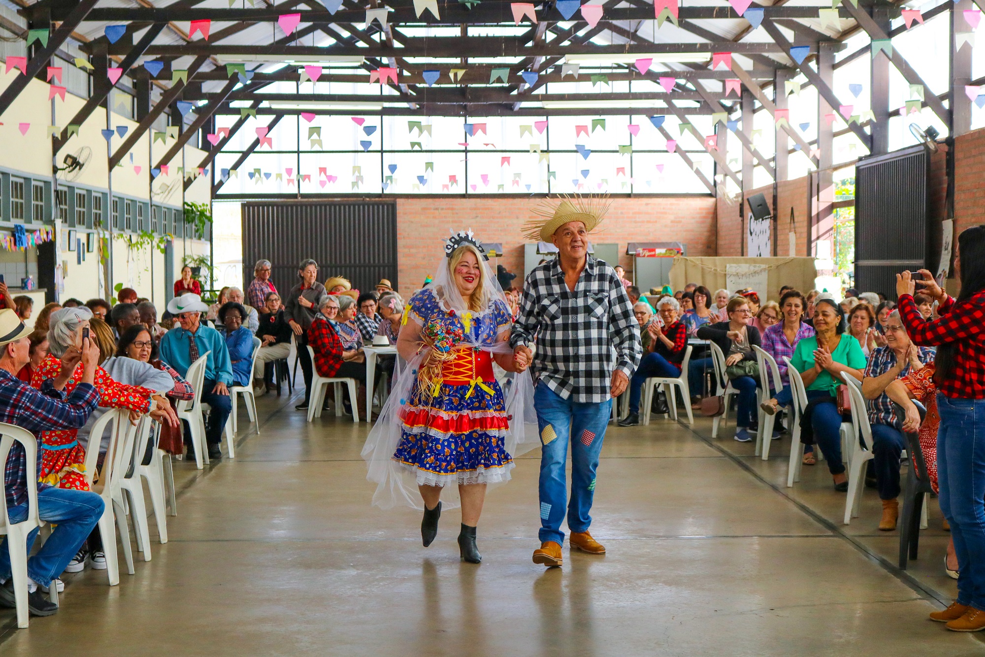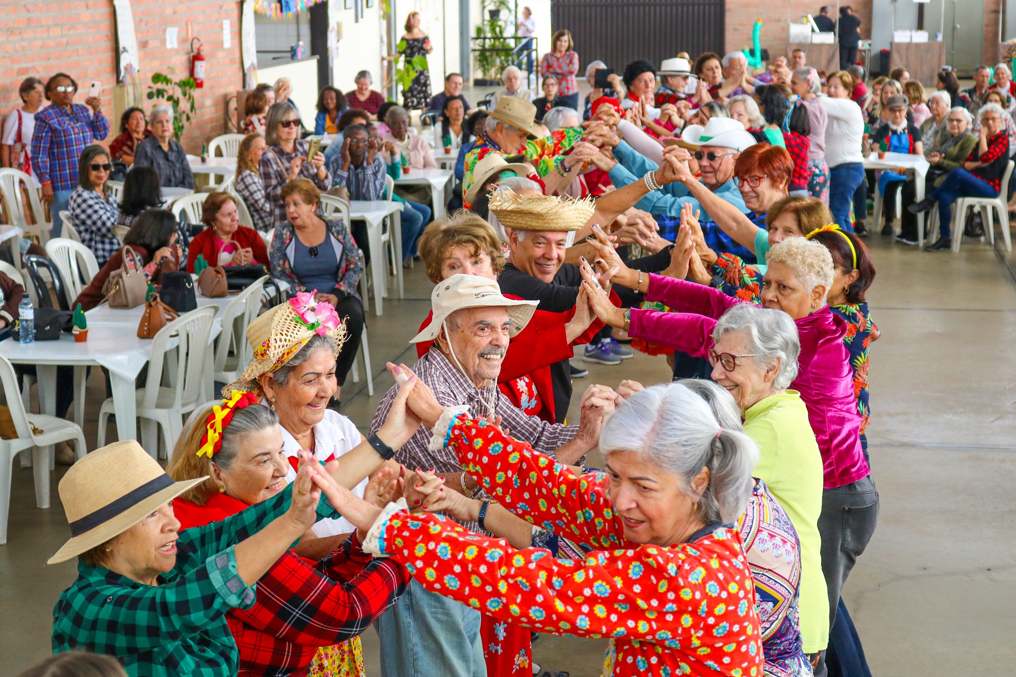 Uma festa junina com a temática dos cordéis nordestinos movimentou na manhã de hoje, 21/07, a Estação Idoso, serviço de Convivência e Fortalecimento de Vínculos da Secretaria Municipal de Assistência e Desenvolvimento Social (Smads). Evento teve casamento caipira e quadrilha, sanfoneiros, além de comes e bebes. A festa é um momento importante de socialização entre os grupos que frequentam o espaço para realização de atividades físicas, ginástica cerebral, ioga, coral, artesanato e grupo Estações. No total, 565 idosos estão inseridos nas atividades do serviço. Cerca de 300 deles participaram do evento hoje.