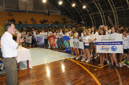 Uma grande festa marcou a abertura dos 4º Jogos Estudantis de Piracicaba, na noite de sexta-feira (02), no Ginásio Municipal Waldemar Blatkauskas, que nesta edição reunirá 15 escolas particulares e aproximadamente 5 mil atletas. A cerimônia foi aberta ao público e atraiu um público de cerca de 1.500 pessoas.
