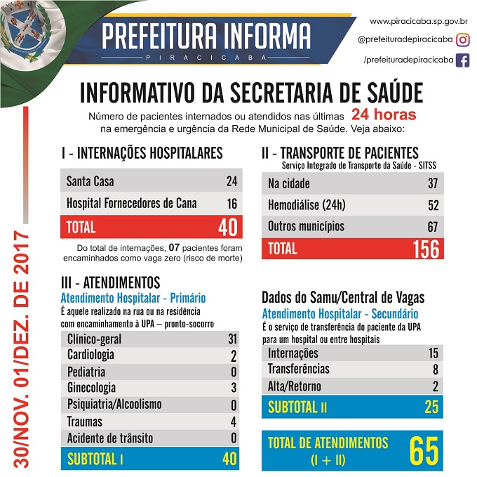 Folheto traz atendimentos de Saúde das últimas 24 horas