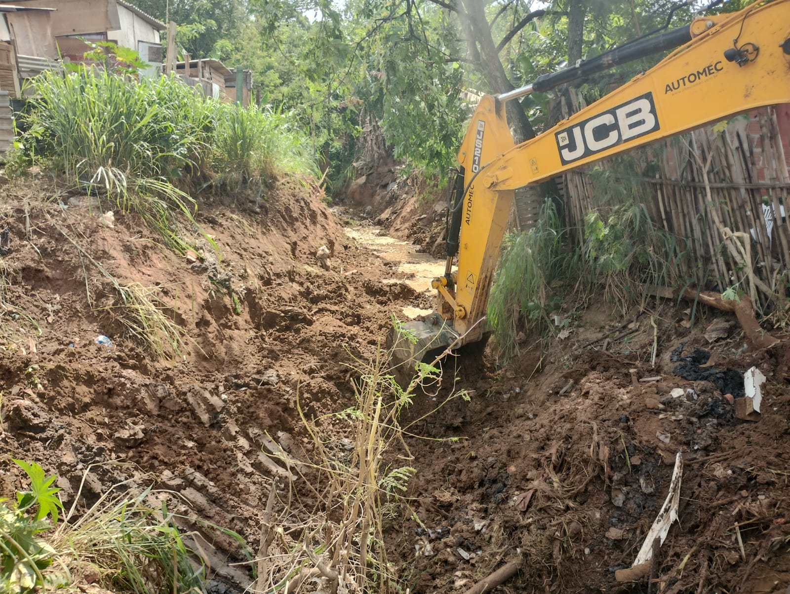 Força-tarefa entre Sedema, Semob e Defesa Civil iniciou hoje, 22/11, limpeza de curso d'água na comunidade Pereirinha, no São Jorge