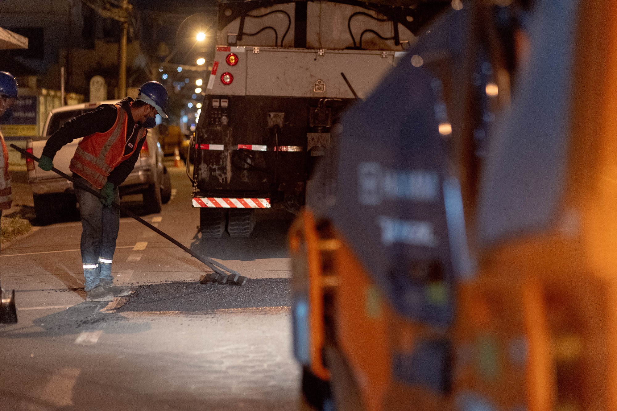 Força-tarefa da Prefeitura realiza operação Tapa-buraco à noite, no Centro