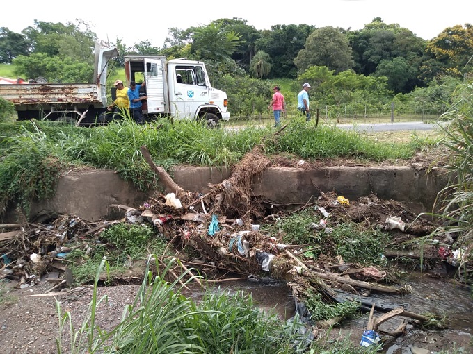 No bairro Itapuã, as esquipes fizeram a limpeza e desobstrução nas galerias do Córrego Itapuã,. No local havia muito lixo, entulho, pneus e madeiras diversas.