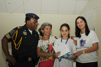 palestras que eu proferia nas escolas sobre as drogas e seus maleficios e comecei a observar que seria interessante montar uma equipe e passar essas informações por meio de cartilhas orientativas. Cada aluno recebe duas cartilhas, uma orientativa e a outra com exercícios”.