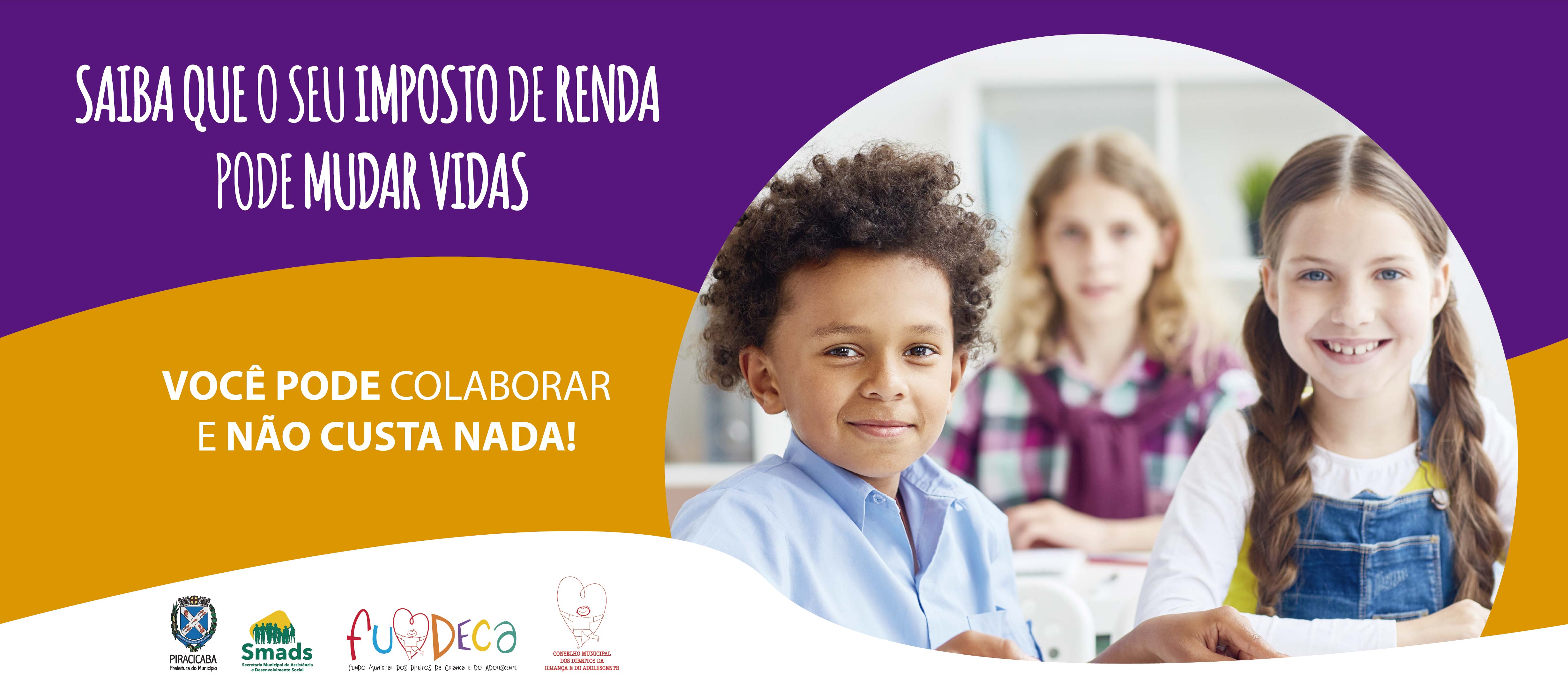 Piracicaba, 28 de abril de 2020 – Com a pandemia de Covid 19, o prazo para declaração de Imposto de Renda foi ampliado em dois meses, seguindo até dia 30 de junho deste ano. Com a ampliação do prazo, também foi ampliada a possibilidade de destinar recursos para o Fundo Municipal dos Direitos da Criança e do Adolescente (Fumdeca).