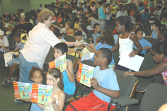 No final da cerimônia todas as crianças, das 13 Emecs, receberam as cartilhas para o desenvolvimento dos trabalhos e participaram de uma confraternização no hall anfiteatro do Centro Cívico.