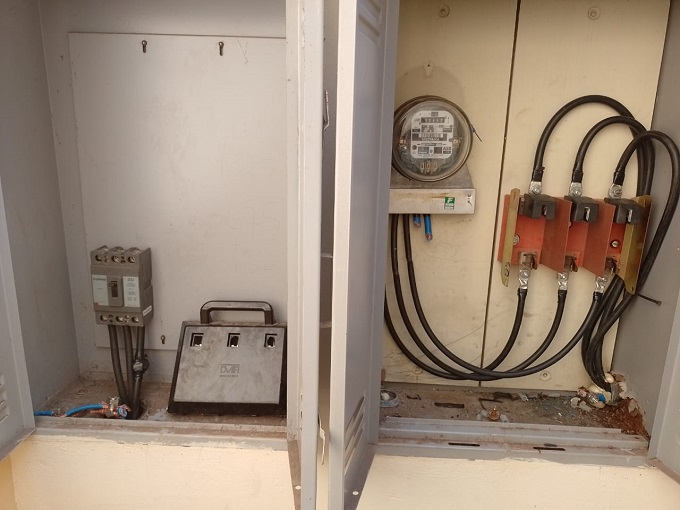 Os criminosos cortaram os cabos na caixa de energia da escola.
