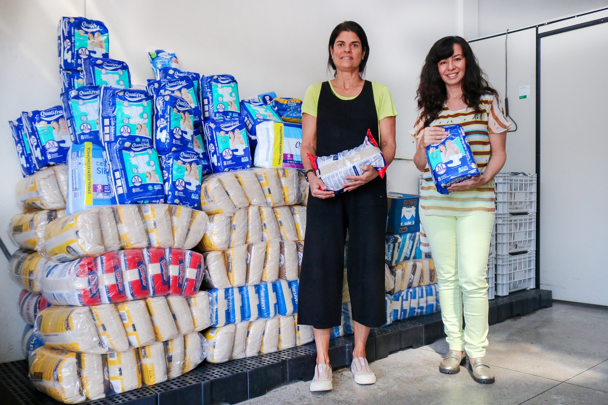 Andréa Almeida, do Fussp, e Mônica Salles, da Oji Papéis, oficializaram a entrega e o recebimento das doações