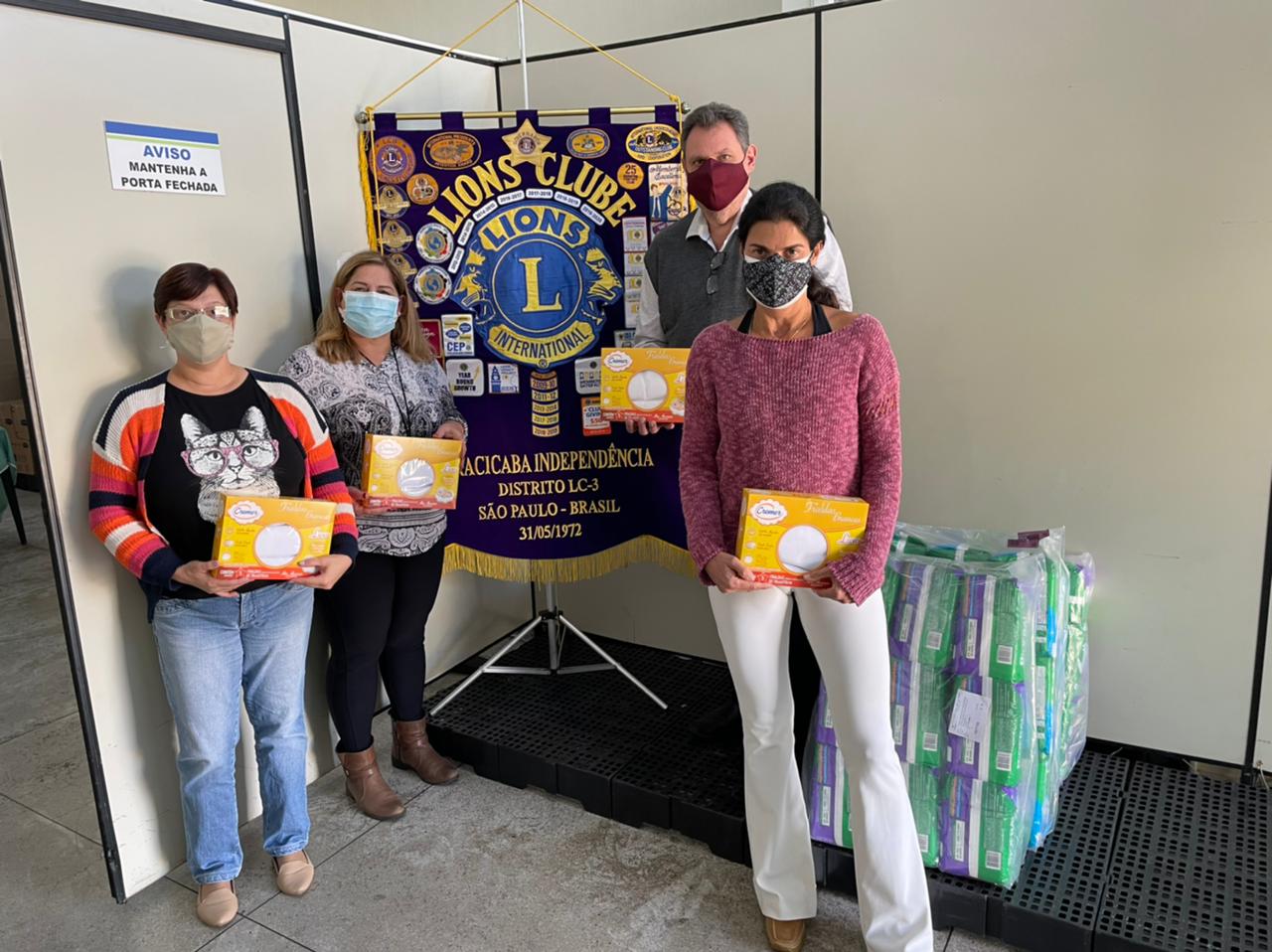A presidente do Fundo Social de Solidariedade (Fussp), Andréa Almeida, recebeu do Lions Clube de Piracicaba Independência 255 fraldas geriátricas, além de 20 unidades de fraldas em tecido. A Central de Projetos, um dos braços do Fussp, encaminha, mensalmente, fraldas para cerca de 100 pessoas cadastradas na Central de Projetos.