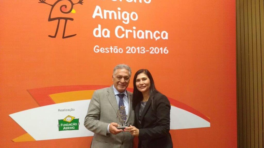 Durante a solenidade na capital federal, Ferrato esteve acompanhado da secretária municipal de Desenvolvimento Social e articuladora do Programa Prefeito Amigo da Criança no município, Eliete Nunes.