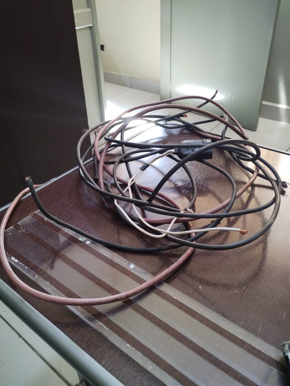 A ocorrência começou com uma solicitação da Central de Operações para deslocamento para o Varejão, porque havia uma denúncia que um homem estava furtando o local. Na rua Gonçalves Dias, próximo ao endereço do varejão, a equipe, formada pelos GCs Tiago e L. Valverde, se deparou com um suspeito com fios e tomada nas mãos. Abordado, confessou que havia subtraído os fios, indicando a localização exata e ainda explicando que não usou nenhuma ferramenta para retirada, subtraindo-os com as próprias mãos. A equipe então acionou o Plantão Policial, que acionou a perícia, que compareceu ao local.