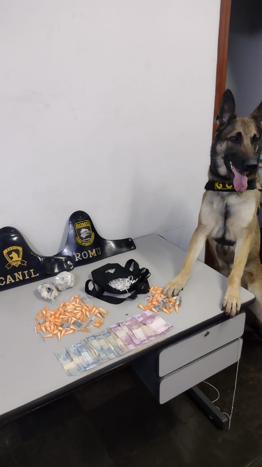 Diversas drogas foram apreendidas pelas equipe da Romu 08 e do Canil