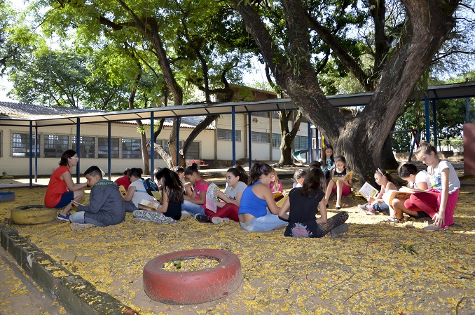 Estudantes da EM João Batista Nogueira fazem atividades ao ar livre: escola é gerida pelo município desde 2000