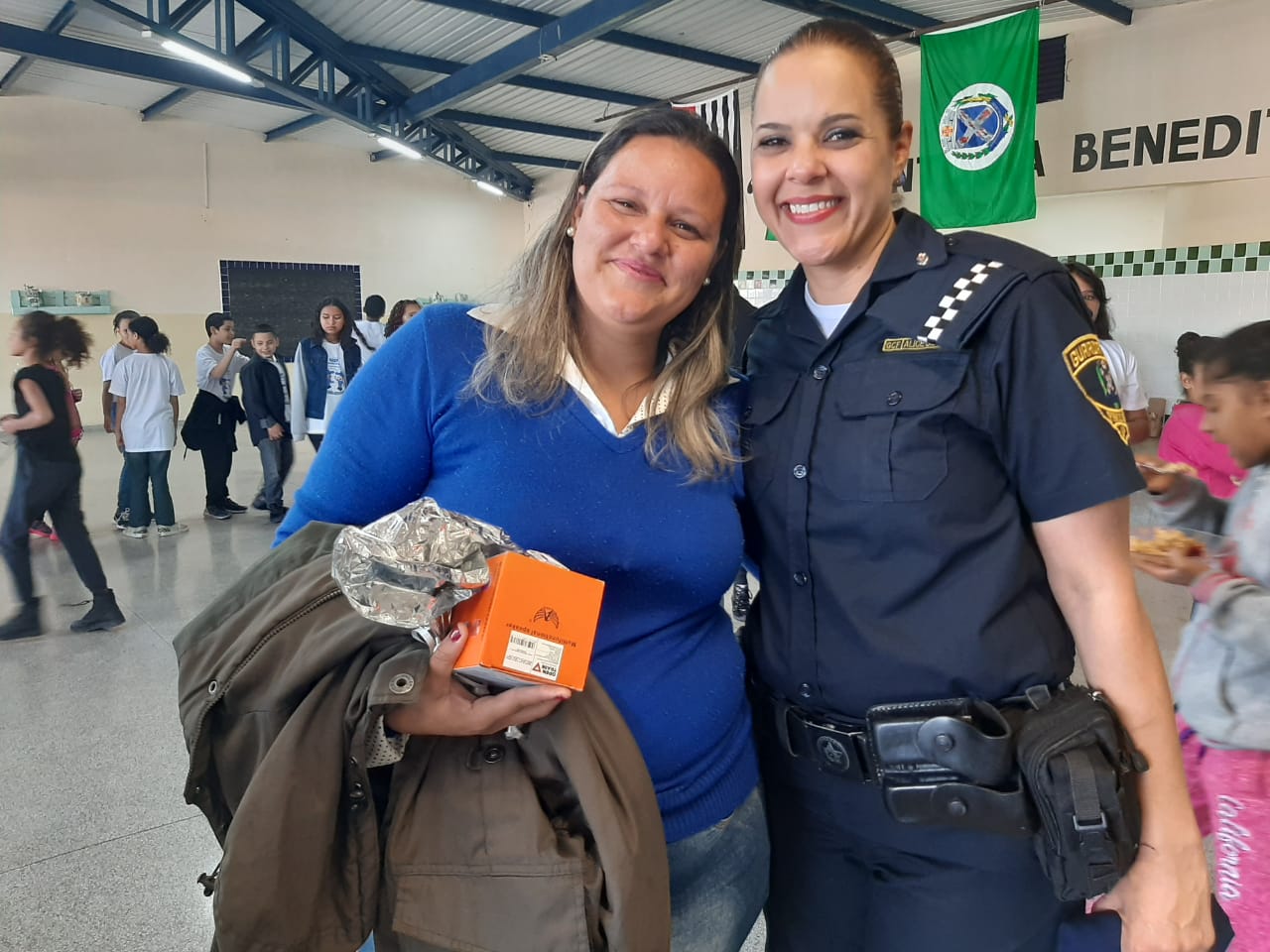 Elessandra agradece a GCF Alice, que coordena o Pelotão Escolar, pelas aulas