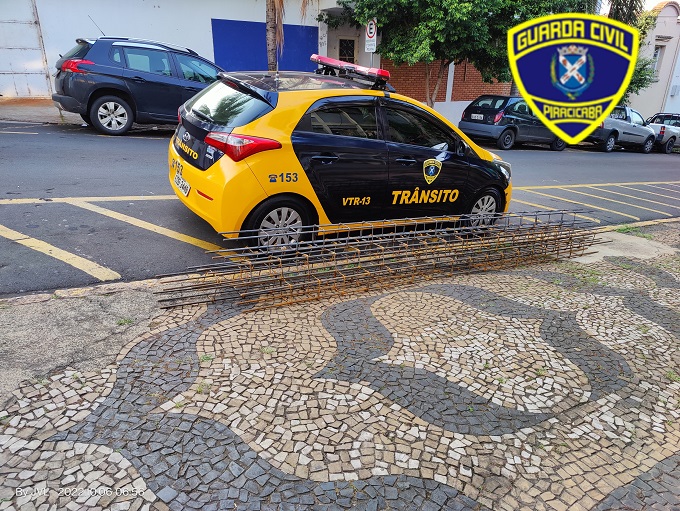 Durante patrulhamento com a viatura 13, os guardas-civis P. Franco e Vasconcelos visualizaram um indivíduo carregando uma armação de ferro de construção e fizeram a abordagem de L.R.M.J, 31 anos. Ao ser questionado sobre os objetos, J., que tem quatro passagens por furto e uma por roubo, informou que havia furtado de uma construção e venderia por R$ 25 para o dono de um bar, que já tinha comprado outras quatro colunas de ferrao.