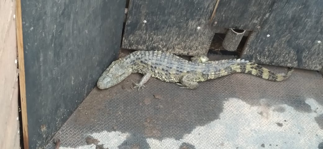 A Patrulha Rural da Guarda Civil resgatou na última sexta-feira, 07/04, em chácara no bairro Santa Olímpia, um jacaré-de-papo-amarelo.