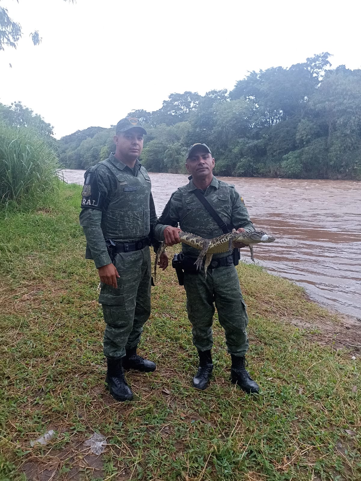 Guarda Civil resgata jacaré-de-papo-amarelo em Santa Olímpia