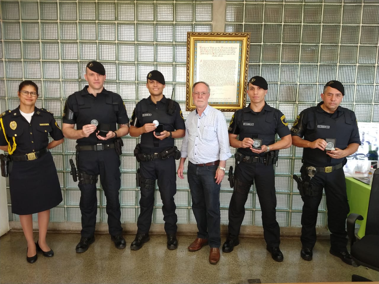 Os quatro guardas civis municipais que, na noite da última quarta-feira salvaram a vida de um bebê de apenas três dias, foram recebidos pelo prefeito Barjas Negri, na tarde de hoje (09/08). Eles foram condecorados com a Medalha da Cidade, pelo ato heroico.