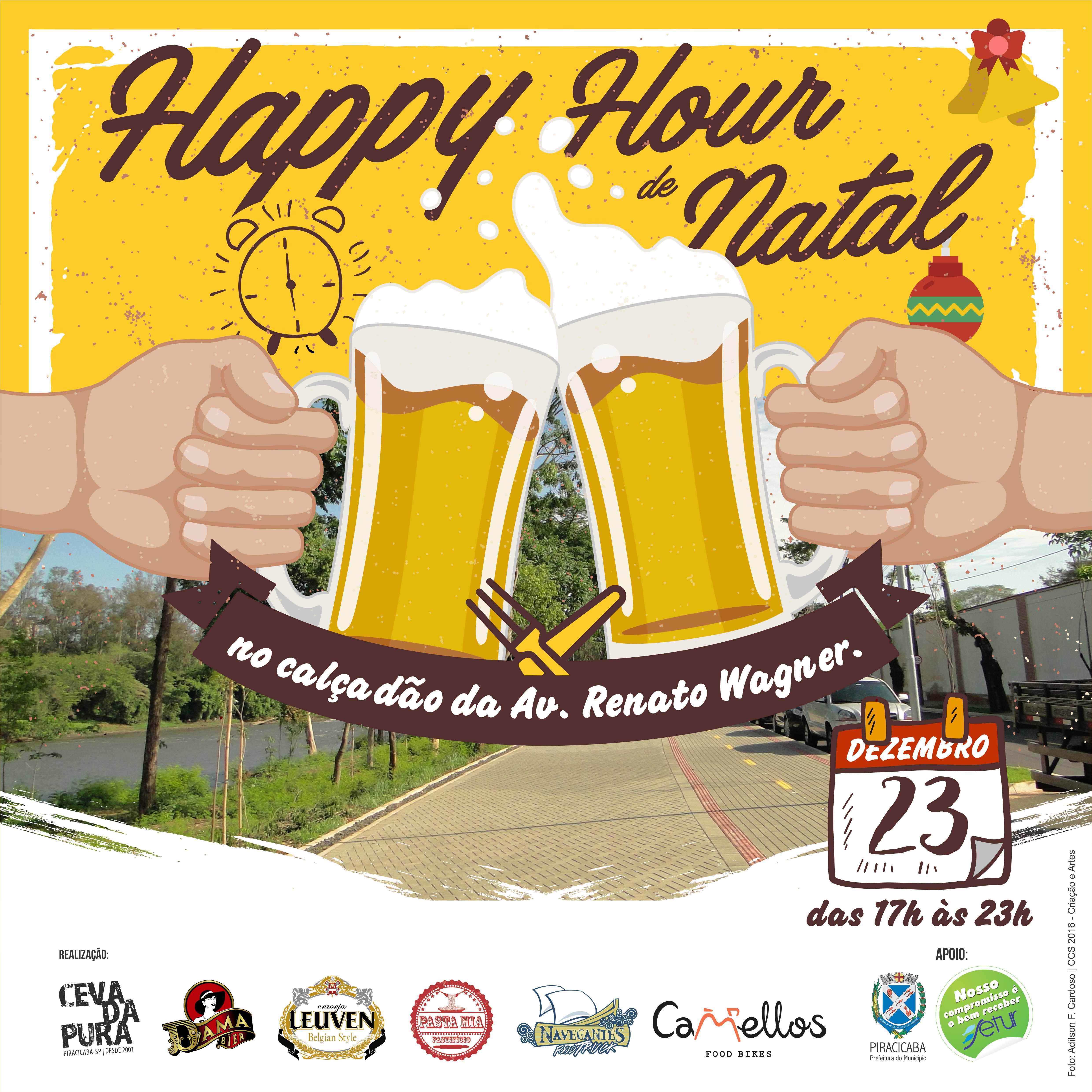 O calçadão da Av. Renato Wagner receberá nesta sexta-feira, dia 23 de dezembro, das 17h às 23h, o evento “Happy Hour de Natal”, que reunirá food trucks e cervejarias artesanais de Piracicaba para iniciar as comemorações de Natal da cidade com muita alegria, num belo cenário na orla do rio Piracicaba.