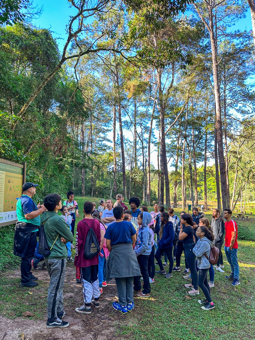 As crianças percorreram as trilhas dos Lagos e da Biodiversidade, nas quais puderam aprender um pouco sobre a história, a cultura e a biodiversidade local (Matheus Magrin)