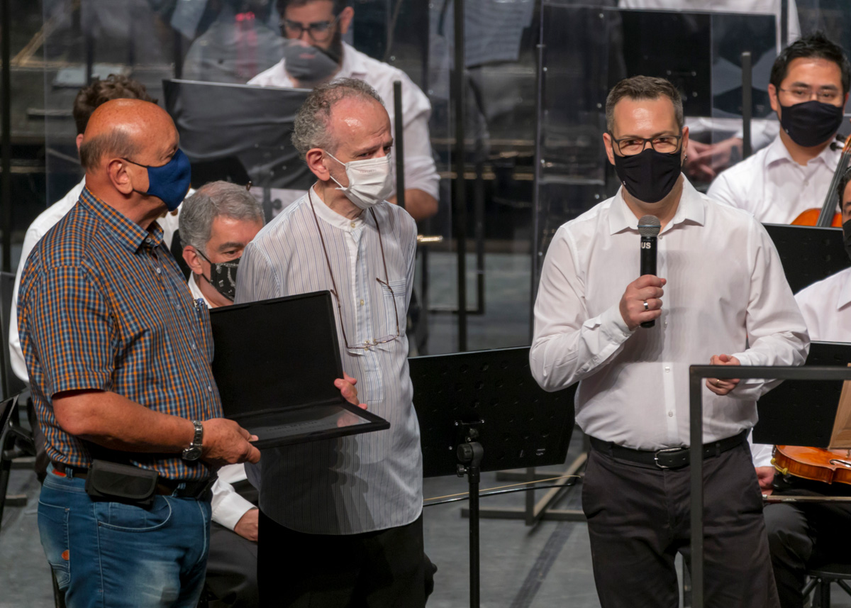 Jamil Maluf, regente emérito da OSP – foto Rodrigo Alves Ainda segundo Micheletti, graças ao nível artístico conquistado em tão pouco tempo pela OSP sob a batuta de Jamil Maluf, o conjunto esteve no Festival de Inverno de Campos do Jordão e na Sala São Paulo. "Falar de música clássica nesse país, é falar de Jamil Maluf. Ele representa muito para a democratização da música de concerto", declarou, ao citar como exemplo os 150 mil espectadores desde 2015 e a sempre disputada procura por ingressos. Já o presidente da Associação da Orquestra Sinfônica de Piracicaba, Reinaldo Gerdes, lembrou que foi graças ao trabalho de Jamil que o conjunto recebeu o título de Patrimônio Cultural e Imaterial do Município de Piracicaba, por meio de registro do Codepac (Conselho de Defesa do Patrimônio Cultural). "Na noite que marcou nosso reencontro presencial depois de muitos meses, aproveitamos para prestar a homenagem, repleta de gratidão, por toda a contribuição dada a cada um dos músicos e à cidade", declarou. Ainda no período em que permaneceu nas funções na OSP, Jamil Maluf recebeu, pela APCA (Associação Paulista dos Críticos de Arte), o prêmio de Melhor Regente de Orquestra, em 2017. Ele também recebeu o Título de Piracicabanus Praeclarus, em 2016. A homenagem é concedida pela Câmara Municipal de Piracicaba aos nascidos na cidade que se destacam na sociedade e que, de alguma forma, contribuíram para as artes, as ciências e as letras ou ainda na promoção da saúde, educação, desporto e lazer. O concerto de encerramento da Temporada 2021 da Orquestra Sinfônica de Piracicaba acontece em 18 de dezembro, no Teatro Municipal Dr. Losso Netto, às 16h e 19h, ocasião em que será feito o anúncio oficial do próximo regente titular e diretor artístico. A realização é da Secretaria Municipal da Ação Cultural, com patrocínio prata da Caterpillar e patrocínio bronze da Comgás.