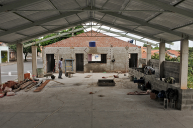 O secretário de Agricultura e Abastecimento, Waldemar Gimenez, destaca outra característica na obra. "As colunas de madeira foram substituídas por colunas de concreto armado, o que deixa a construção mais limpa, durável e de fácil manutenção", observa. Gimenez informa ainda que esta semana será concluída a cobertura do galpão e, na próxima, iniciado o assentamento do revestimento da cozinha e banheiros.