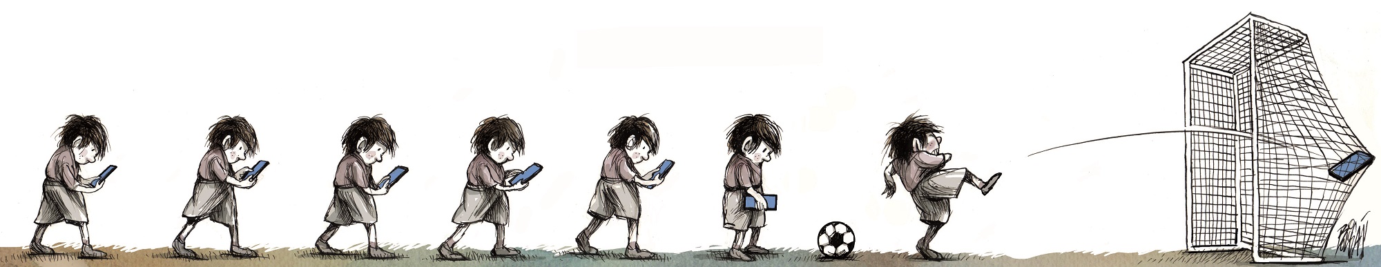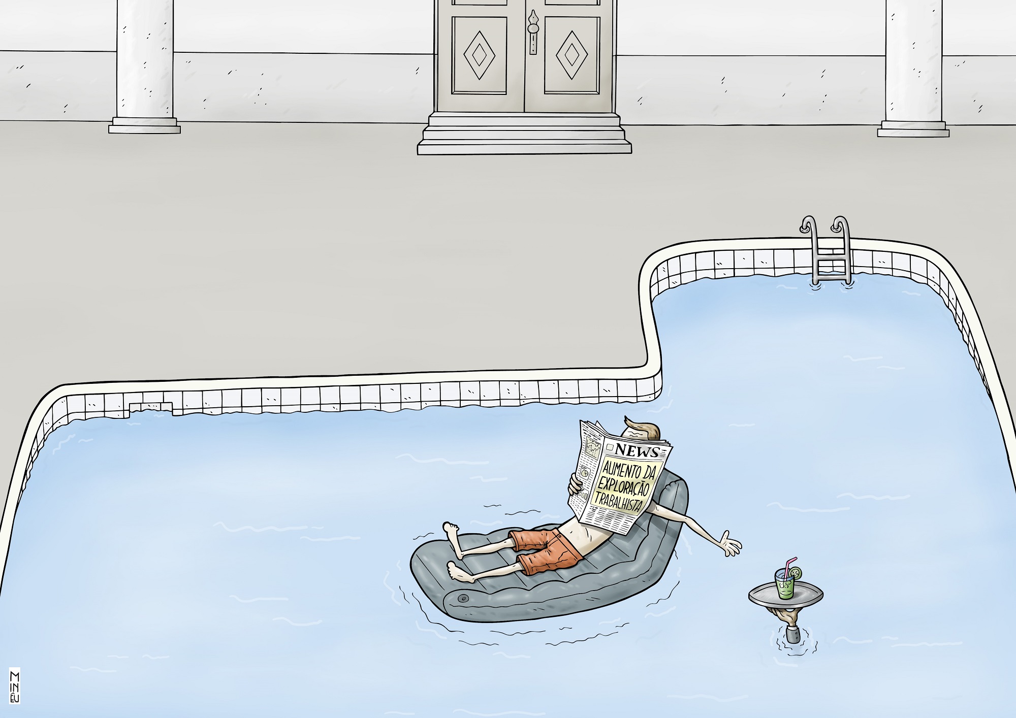 Charge de autoria do brasileiro Rodrigo Mineu foi uma das obras selecionadas para a mostra oficial