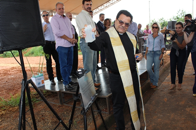 Monsenhor Ronaldo Francisco Aguarelli, da Catedral de Santo Antônio, abençoando a obra.