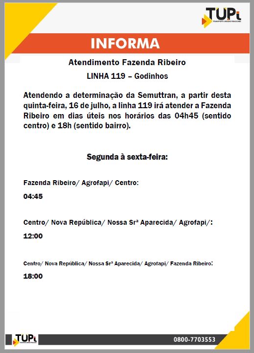 Linha 119 – Godinhos atenderá a Fazenda Ribeiro