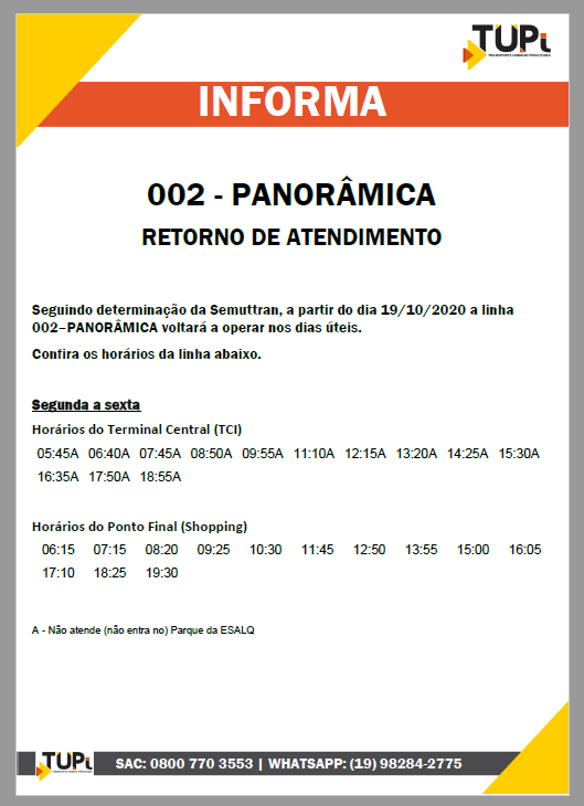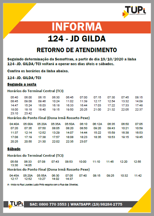 Linha 124 – Jardim Gilda e 002 – Panorâmica retornam atendimento