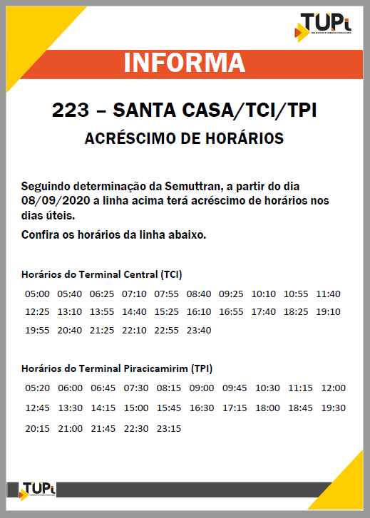 Linha 223-Santa Casa/TCI/TPI tem acréscimos de horários
