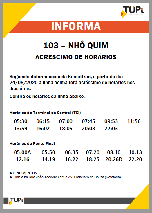 Linhas 103-Nho-Quim e 309-Campestre terão acréscimos de horários nos dias úteis