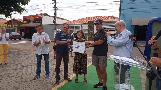 Moradora de Artemis, Kazue Otsubo, representou toda população do local e foi homenageada Luciano Almeida destacou a importância da revitalização, que foi realizada com recursos do Governo do Estado de São Paulo, conseguidos pelo deputado Alex de Madureira, com intermediação do vereador Josef Borges. O investimento foi de R$ 99.970,94. "Esse é um modelo que queremos dar continuidade, feito a quatro mãos, Prefeitura, Câmara, governo do estado e comunidade. É uma iniciativa que só traz benefícios a todos. E uma grande novidade é que, a partir dos próximos meses, vamos implantar aqui o projeto-piloto de Subprefeitura. Tudo isso graças ao empenho de todos. Juntos estamos construindo uma cidade melhor", celebrou o prefeito.