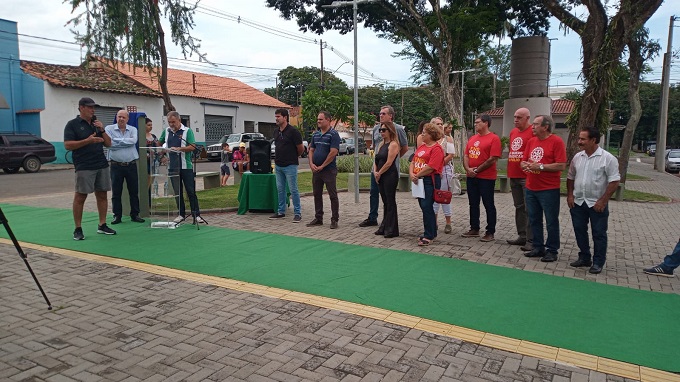 O prefeito Luciano Almeida entregou a Praça João Alfredo, em Artemis, no sábado, 19/03, em cerimônia realizada no espaço, às 9h. A praça foi revitalizada pela Prefeitura e fica na avenida Fioravante Cenedese com rua Quinze de Novembro, em frente à antiga Estação da Sorocabana. Participaram do evento, também, o secretário de Saúde, Filemon Silvano, e da Ação Cultural, Adolpho Queiroz, e os vereadores Josef Borges e Paulo Camolesi, além do assessor Pedro Noé, que representou o deputado Alex de Madureira, e integrantes do Rotary Club Piracicaba – Engenho, Alessandra Moraes, Pedro Luiz Schimidt, Luiz Fernando Rebel Machado e Jayme Duarte.