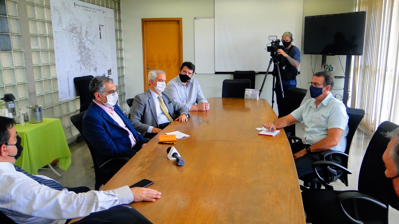 O reitor da USP, Vahan Agopyan (de terno azul), e comitiva foram recebidos pelo prefeito Luciano Almeida
