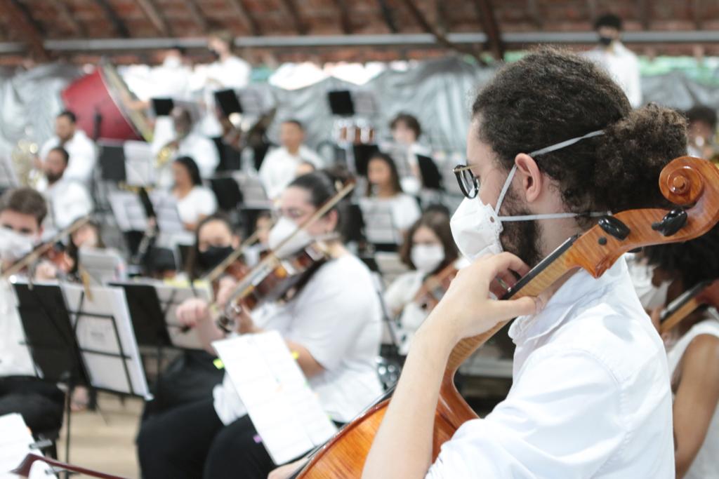 Papai e Mamãe Noel acompanharam a Orquestra Educacional em algumas músicas