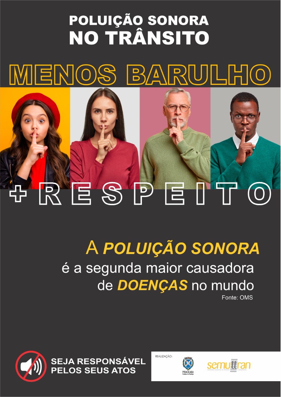 Para a Organização Mundial da Saúde (OMS), a poluição sonora é a segunda maior causadora de doenças no mundo. Visando tornar Piracicaba uma cidade mais silenciosa, a Prefeitura, por meio da Semuttran (Secretaria Municipal de Mobilidade Urbana, Trânsito e Transportes), lançou ontem, 26/05, campanha de conscientização dos condutores quanto ao barulho proveniente dos veículos automotores, que causam, inclusive, problemas à saúde.